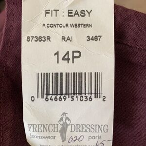French Dressing Burgundy jeans, Size 14P, New with tags. Wide leg and high rise