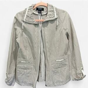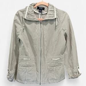Channel effortless Parisian chic with this French Dressing Jeans pinstriped jacket, a perfect blend of classic tailoring and laid-back ease. Crafted in a soft neutral pinstripe, this jacket features a zip-front closure, drawstring hood detail, and subtle front pockets for a practical yet refined touch. Its lightweight structure makes it ideal for layering, offering that timeless French girl off-duty look that transitions seamlessly from café mornings to evening strolls.
