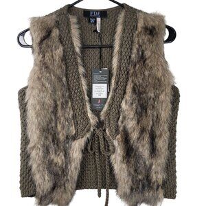 • French Dressing Jeans Faux Fur Vest Size XS Taupe Knit & Fur Detail Tie Front New