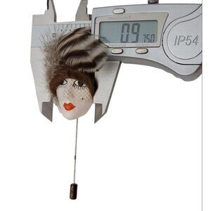 This French Flapper Stick Lapel Pin will make a great addition to your collection. It features a lady's head with a feathered hat. Her face is beautiful with noticeable long lashes, red lips, and a mole. This is a distinctive 1920's look for women. The headpiece measures approximately 0.9 inches in width and 1.5 inches in length. These stick lapel pins work well in felt hats and some fabric-covered hats.