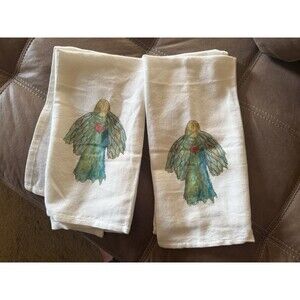 French Graffiti Linen Angel Artwork Hand/Dish Towels set of 2 25x19 in