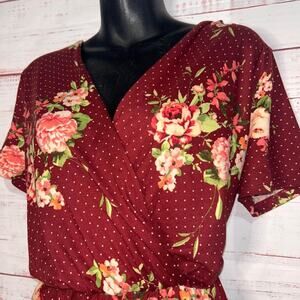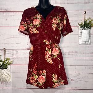• Burgundy contrast with white polka dots & floral pattern | Wrap top | shorts bottom | elastic banded waist