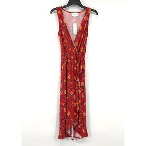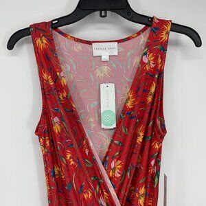 French Grey Dress Womens Size XS Kerry Red Floral V Neck Faux Wrap Midi Knit. New with tags.