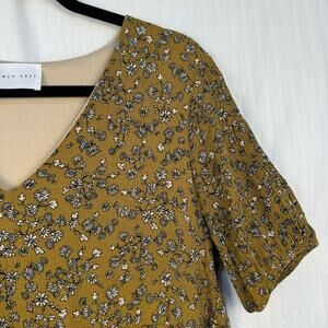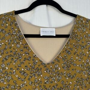 French Grey Mini Dress Women’s Size Medium Dark Mustard Green White Fall Florals