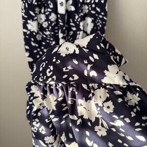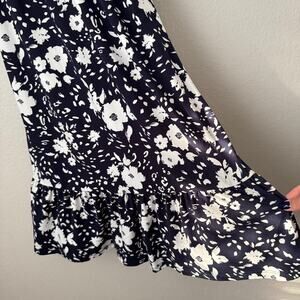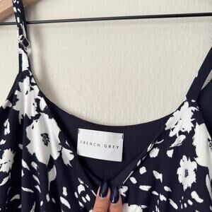 French Grey Womens Blue White Midi Dress Trumpet Flowy Elegant Strap Size Medium