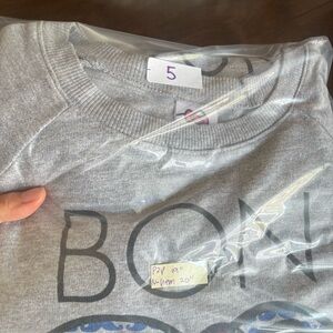 French Hello kitty w/ mustache Bon Jour crew gray Sweatshirt