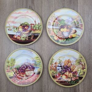 French Home De Limoges France 4 Porcelain Plates with Fruits