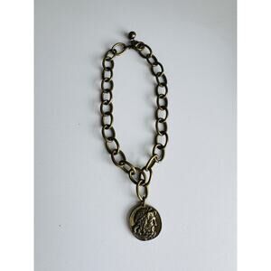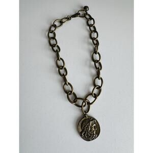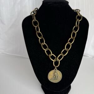 French Kande Brassy Metal Chain Good Luck French JEUMONT Gods Coin Pendant 16"