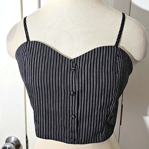French Kiss Crop Top Size Large Black And White Pin Striped.