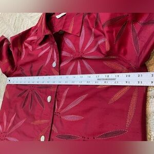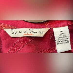 French Laundry Petite 100% Silk (Raw) Embroidered Button Up 3/4 Sleeve Blouse