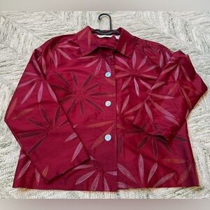 French Laundry 100% Silk (Raw) Embroidered Button Up 3/4 Sleeve Blouse