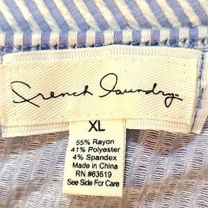 French Laundry Blue & White Pinstripe Top Buttons on Shoulders & Ruching…
