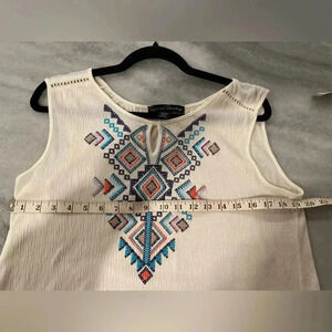 French Laundry Cross Stitch Printed Keyhole Neck Eyelet Boho Tank Top Size L