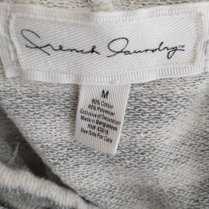 French Laundry Gray White Stripe Terry Longline Drawstring Neck Longsleeve top M