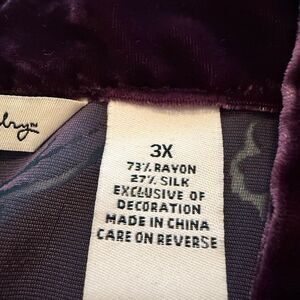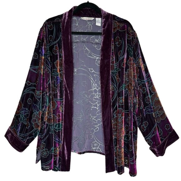 French Laundry Kimono Jacket Purple Floral Velvet Burnout Size 3X Boho, Elegant