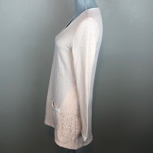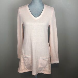 French Laundry Peach Tunic Sweater with Pockets and Lace trim detail