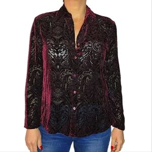 French Laundry Rayon Silk Jacquard Button Up Long Sleeve Blouse Deep Red Small