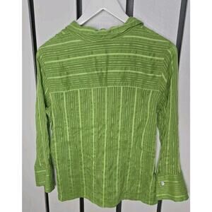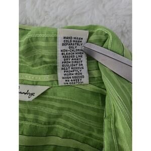 French Laundry Silk Linen Blend Button Up Lime Green Striped Y2K Shirt Womens M