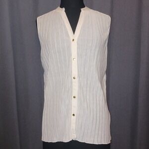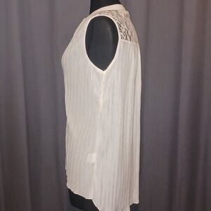 French Laundry Sleeveless White Chiffon Top M Pleat Lace Back‎ Gold Tone Buttons