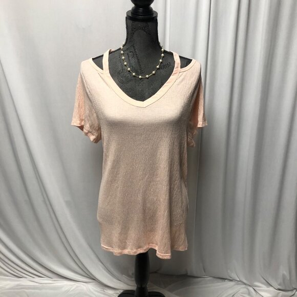 French Laundry Top Womens Size Large V-Neck Short Sleeve Cut Out Shoulders