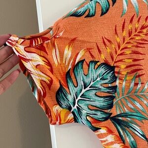 EUC excellent condition & quality! Beautiful vibrant orange with tropical colors, polyester and spandex by French Laundry. Short sleeve. Keyhole at sleeve cuff. Elastic waistline. Decorative buttons. Great summer vacation blouse! Measurements in photos. Women’s size medium. Smoke free home
