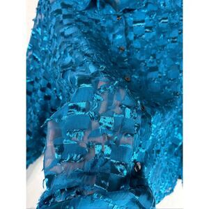 French Laundry Woman 2X Teal Textured Sheer Button-Up Blouse Boho Chic Top