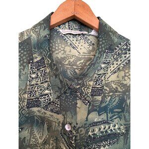 French Laundry Women's Blouse Abstract Button Up Top Olive Green Large Office
