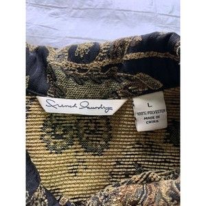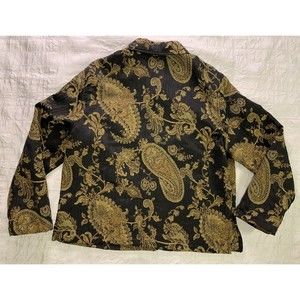 French Laundry Womens Large Blazer Jacket Black Gold Paisley Floral Button Up