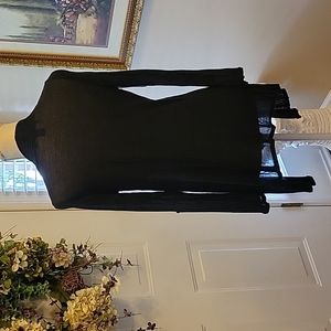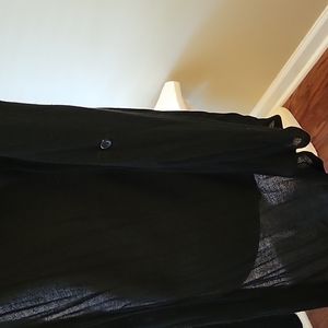 French Laundry black draped open front cardigan. Longer in front. Semi sheer. Long sleeve with roll tab. 100% rayon. Machine washable. Size Small. Approximate measurements 21" from pit to pit. 28" long in back ...longer in front. Excellent pre owned condition. Smoke free and pet free home