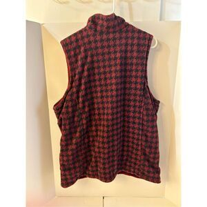 French Laundry vest 2x red black houndstooth plush fleece rn#63619