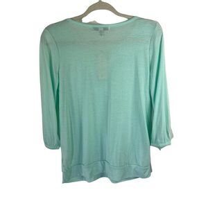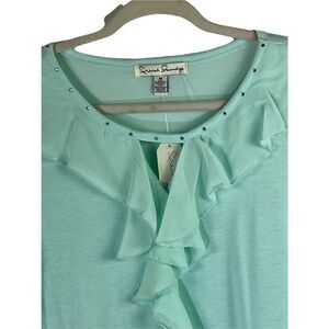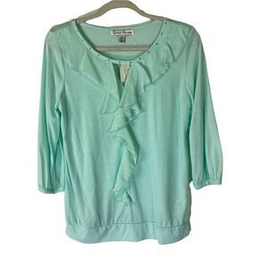 French Laundry Top Medium Blue Aqua Women Ruffle 3/4 Sleeve Colorful Sparkle New