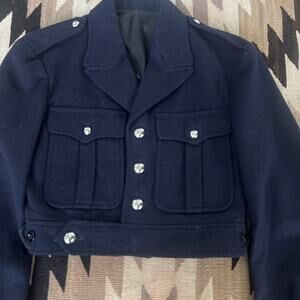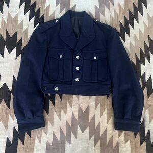 French Military Wool Jacket Navy Crop Small 1950s Vintage CDG Balenciaga Design