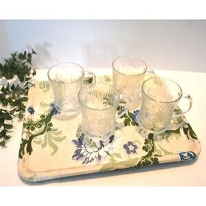 French Mugs Clear Canterbury Crocus Four 10 oz.Arcoroc