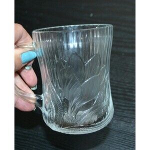 Vintage glass mugs in excellent condition. Awesome for home, cottage, boat, she cave, lodge area and more. The crocus have a look that would be seen on White Lotus. So fun yet glamorous. The pattern was created in France for Arcoroc.