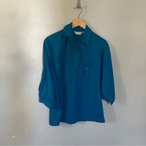 French Navy Vintage Women’s Half Button Down 3/4 Sleeves Blue Medium