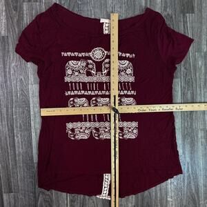 women tee, graphic tee, elephant print shirt, boho crop top, French Pastry brand, burgundy tee, festival top, lace back tee, tribal style top, casual boho shirt
