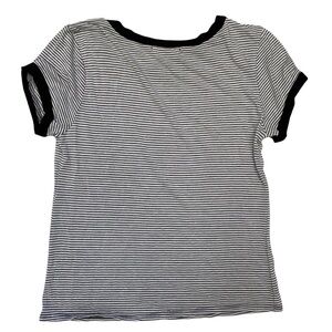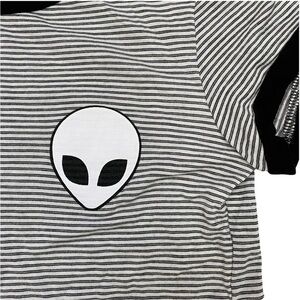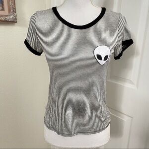 French Pastry Striped Alien Ringer Tee Sz Med Black White