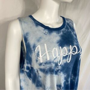 French Pastry Tie Dye “ Happy” Tie Front Muscle Tee