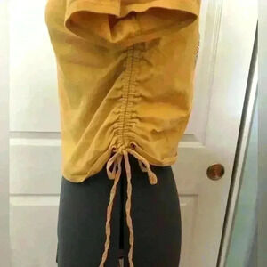 French Pastry gathered scrunched sides yellow Bible quotes short sleeve crop top SM
