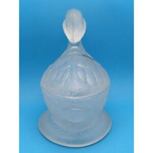 French Portieux Vallerysthal Frosted Duck Trinket Glass Dish 2 Pc. VTG Rare Mint