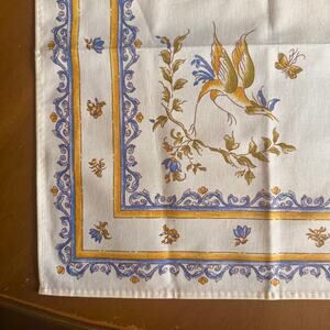 French Provence Cotton Napkins Set of 4 Moustier Bird Butterfly Cream Blue EUC