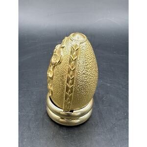 Add a touch of elegance to your collection with this French ROCOCO Style Egg by Franklin Mint. Crafted from high-quality metal, this collector's treasure features intricate details and a stunning gold color. The egg comes with a stand, making it the perfect display piece for any occasion. Imported from Thailand, this original piece is a must-have for any decorative collectibles enthusiast. The egg's style is inspired by the French ROCOCO era, adding a touch of history and sophistication to your collection. Don't miss out on the opportunity to own this unique and timeless piece. It was manufactured in 1990. It measures 2" long and 1.25" wide. It weighs 7.02 ounces.