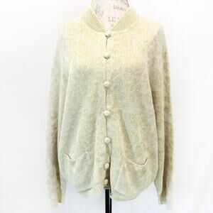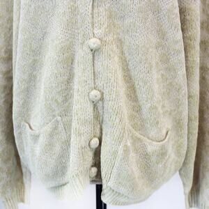 French Rags Vintage 80s USA Textured Knit Cardigan Medium Beige Mod Retro Cozy