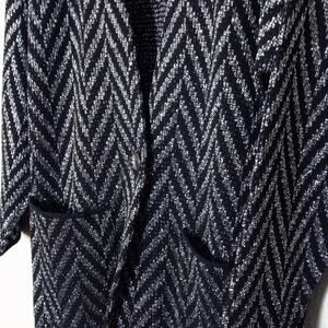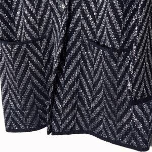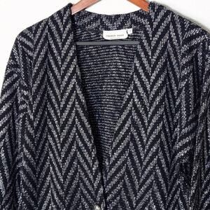 French Rags Women’s Cardigan Dark Academia Minimalist Metallic Chevron Knit Sz 3