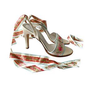 French Ribbon Satin Bridal Heels, Size 37EU, Blue, Pink