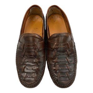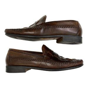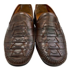 French Shriner Avalon Dress Shoe Mens Size 10 Loafer Slip On Woven Brown Leather
