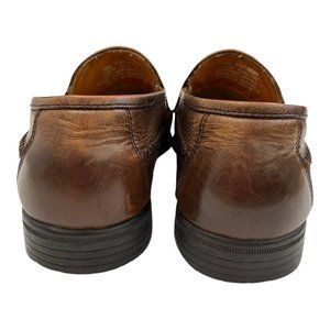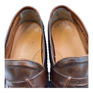French Shriner Avalon Dress Shoe Mens Size 10 Loafer Slip On Woven Brown Leather.