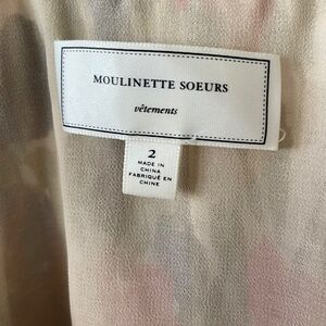 Moulinette Sours Size 2 Silk French Style summer dress, skip through the French countryside:) Tie at waist for perfect fit, just above knee length I am 5'8". Excellent preowned condition.