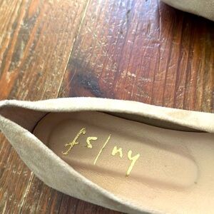 French Sole FS/NY Beige Suede Square Toe Ballet Flat Shoes w/Crystals Size 7.5