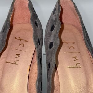 French Sole FS/NY Womens Flat Wedge Shoes Scalloped Grey Suede Patent Dots size